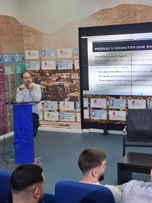 Në këtë komponent të projektit u përfshinë 25 studentë, të cilët morën pjesë në një program të strukturuar trajnimi të ndërtuar sipas standardeve bashkëkohore të medias digjitale. Programi përfshiu katër module trajnimi, të cilat kombinuan leksione teorike, punë në grup dhe ushtrime praktike për të ndihmuar pjesëmarrësit të zhvillojnë aftësi konkrete në gazetarinë moderne.